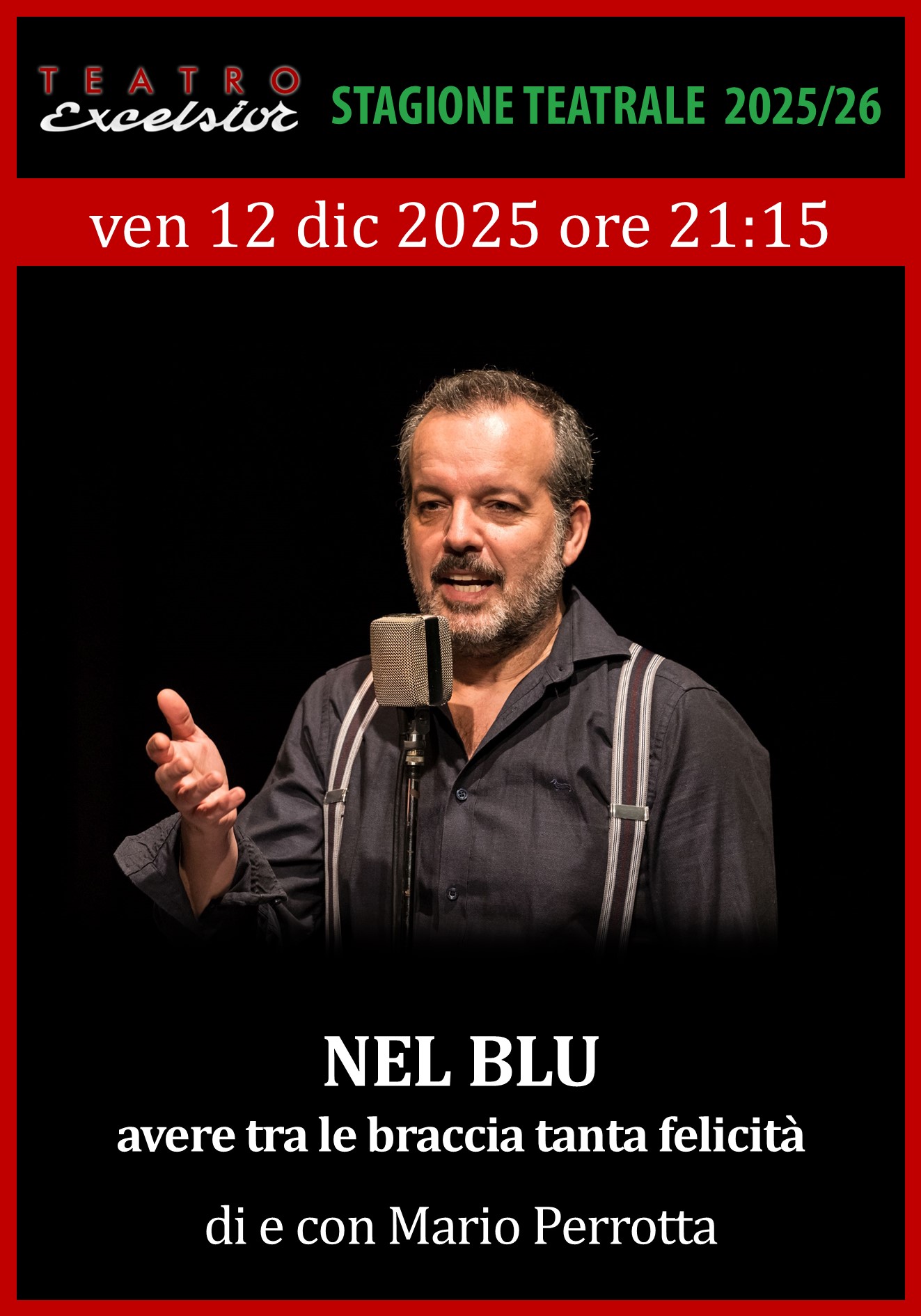 L’autore, regista e interprete Mario Perrotta dedica il suo nuovo progetto alla “felicità” ispirandosi alle parole, alla musica e alla vita del celebre cantautore Domenico Modugno, che, secondo l’artista, incarna a pieno questo sentimento. Uno spunto per riflettere su quanto sia difficile oggi aspirare alla felicità, a differenza dell’epoca del boom economico in cui c’era voglia di sognare un futuro migliore.